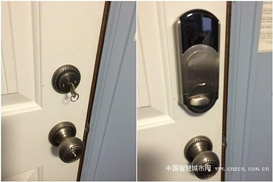 Kevo蓝牙门锁从外面看就像是一款普通的门锁,不过门锁周围拥有环形LED灯设计,用来表示门锁的状态,比如绿色代表开锁。门的另一面、也就是家中的部分,看上去就有些科技感了,主要的电子部件也都集成在这里,另外还有门栓等传统的设计。它的安装并不算复杂,稍微有点手工经验的人都可以在半个小时内完成安装,当然也可以叫换锁工人来操作。完成安装之后,需要进行简单的调校、完成手机配对等操作。
