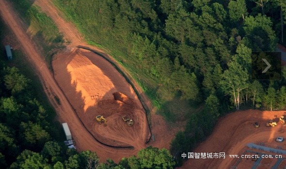 苹果似乎在利用周围的泥土为厂房修建防水堤坝