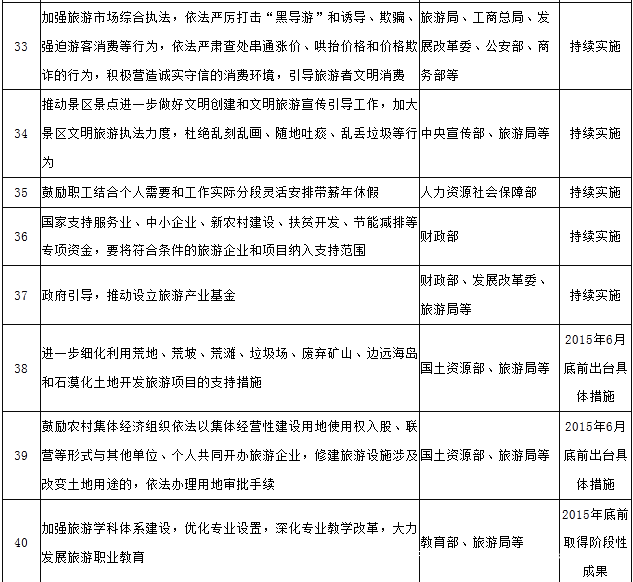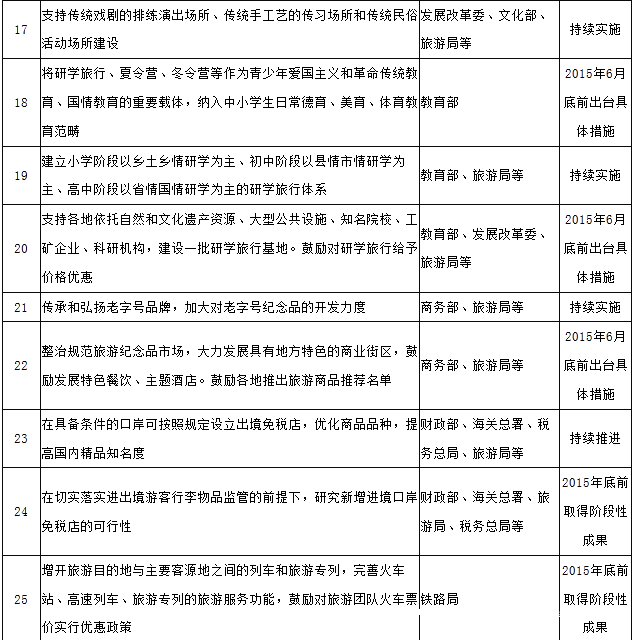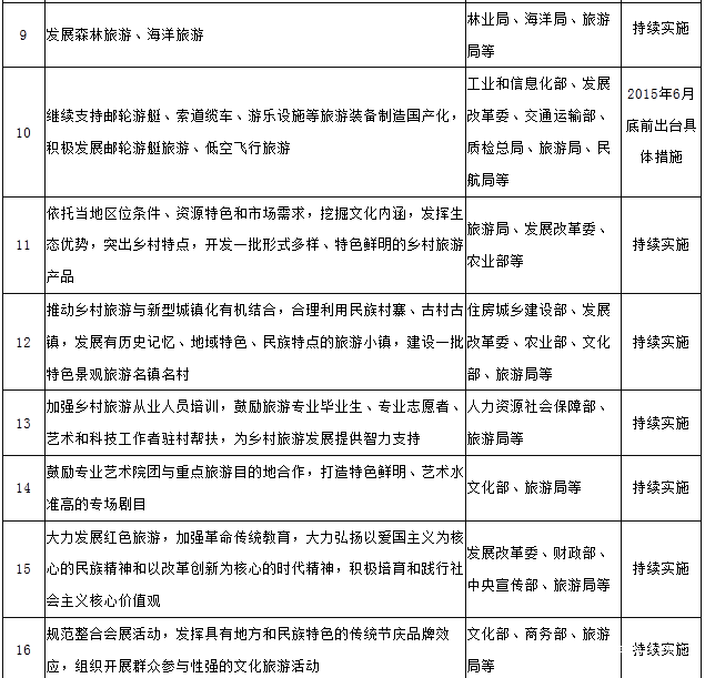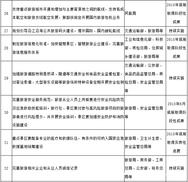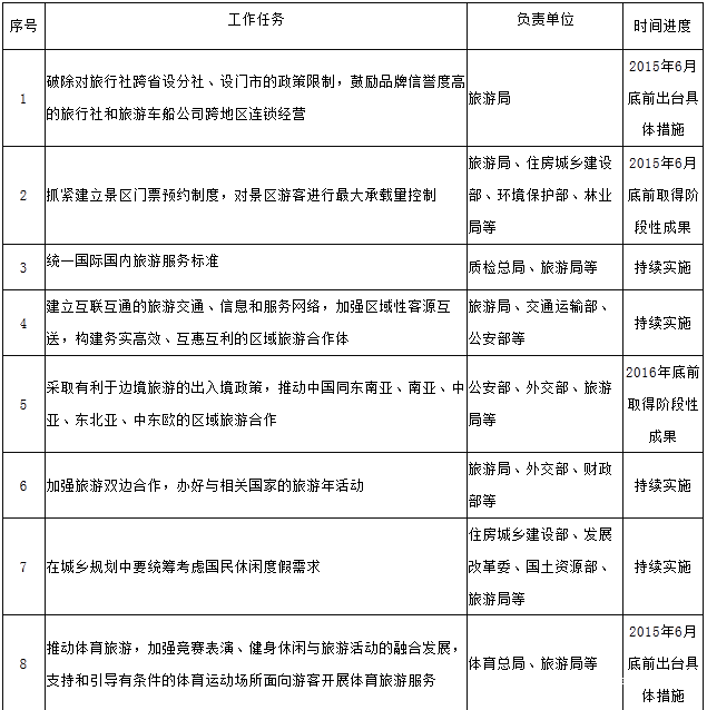 《国务院关于促进旅游业改革发展的若干意见》任务分解表