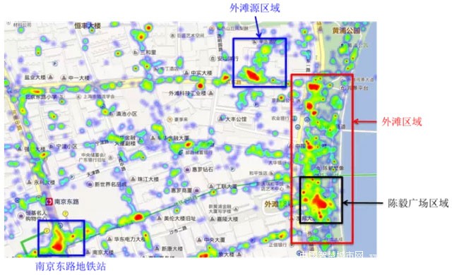 图4 外滩和外滩源区域人群分布热力图(2小时)