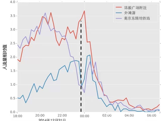我拿到一份百度研究院大数据实验室的分析报告,对外滩踩踏事故发生的背景、数据作了多维度的分析与透视。我们可以看看,如果事故当时黄浦区公安局的监控室里可以有这样的实时监控数据,悲剧是否可以预警?或者,我们可以想象,如果各地政府的智慧城市系统未来可以运行这样的大数据智能分析平台,是否能避免下一次悲剧的发生。也许,有了大数据智能分析监测,我们就可以既享受灯光秀,也不会发生惨案。而建设智能科技与大数据分析平台,就是为了让生活更美好。