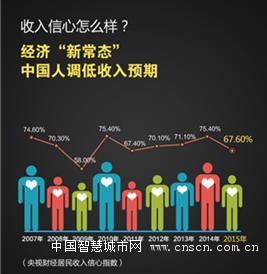67.6%,这是CCTV《中国经济生活大调查》给出的2015年中国家庭的收入信心指数,值得注意的是,这项调查已经连续九年,每年调查10万户中国家庭收入情况的数据,以此编制出央视“居民收入信心指数”。本届大调查收入信心指数是4年来的低点,显现出伴随经济新常态,百姓已调低对未来收入预期的趋势