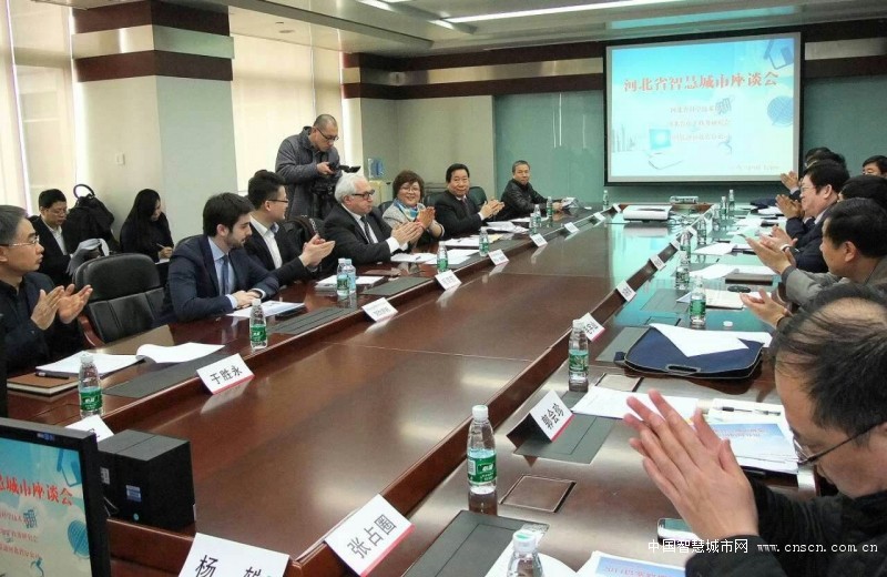 会上,杨金深副主席与乔治·占美好主席首先分别介绍了河北省与巴塞罗那市智慧城市建设的理念与发展水平,杨金深副主席表示,河北省是中国京津冀协同发展概念中的主体之一,同时也正在举全省之力打造以人为本的智慧城市,这不仅是京津冀协同发展的推动力,更是利国利民的举措。乔治·占美好主席对此表达了赞同,并表示这与巴塞罗那市的建设理念高度契合。随后,阿尔贝托·马丁参赞就巴塞罗那智慧城市博览会进行了详细介绍,王燕京副会长就中国通信工业协会组织中国区展团的历届情况做了分析与介绍,董振国理事长就2014年河北省展团参与巴塞罗那博览会情况做以详细介绍。王燕京副会长并乔治·占美好主席共同向在座领导嘉宾发出邀请,希望越来越多的智慧城市建设实践者参与到国际交流中,促进中国与国外更深入的交流合作。