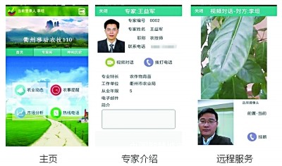 据了解,“移动掌上农技110”在衢江、常山等浙江农业集聚地的试运营情况喜人。通过“移动掌上农技110”,农户在日常生产中遇到动植物生病等任何需要农技专家帮助的事项,就可通过4G手机,在田间地头随时与农技专家发起视频沟通,通过高清摄像头把动植物的问题、病状清晰地告知农技专家,有效节约时间、提升效益、降低风险。农技专家可以在办公室、家里,甚至路途中等任何地点,在农户发起沟通需求后,通过4G移动互联网设备仔细察看问题,短时间内对农户提出的问题进行分析、诊断。据介绍,该平台自今年1月上线以来,涵盖市、县、乡(镇)三级具有农艺师以上专业技术人员的专家库正建设中,目前已发展用户167位,后期将面向衢州全市157万农业从业者推广。