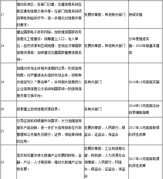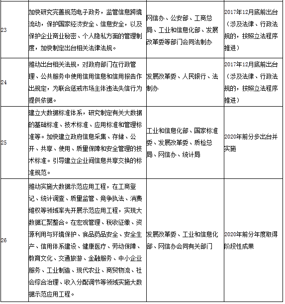 (三十六)联系实际,突出重点。紧密结合各地区、各部门实际,整合数据资源为社会、政府、企业提供服务。在工商登记、统计调查、质量监管、竞争执法、消费维权等领域率先开展大数据示范应用工程,实现大数据汇聚整合。在宏观管理、税收征缴、资源利用与环境保护、食品药品安全、安全生产、信用体系建设、健康医疗、劳动保障、教育文化、交通旅游、金融服务、中小企业服务、工业制造、现代农业、商贸物流、社会综合治理、收入分配调节等领域实施大数据示范应用工程。