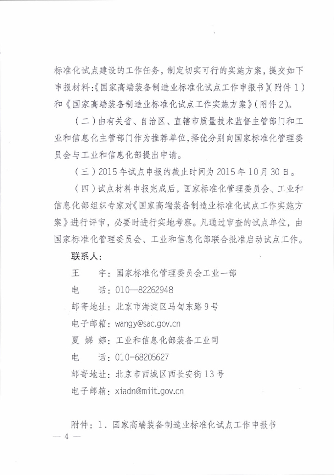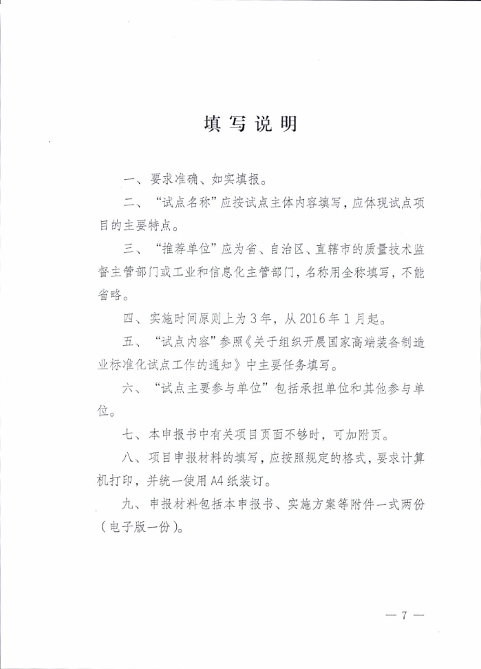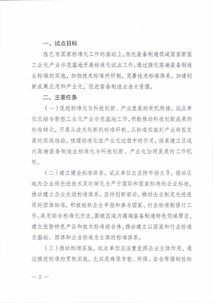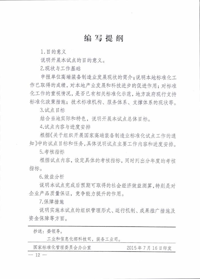 关于组织开展国家高端装备制造业标准化试点工作的通知