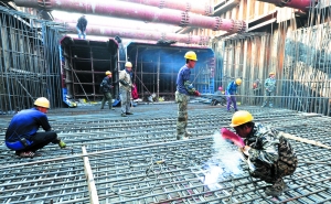 15日,在南部新城乙六路地下综合管廊施工现场,工人们正在绑钢筋、支模版,混凝土浇筑的地下综合管廊已初现雏形,一个宽8米、高4米的地下长廊正在向外延伸。