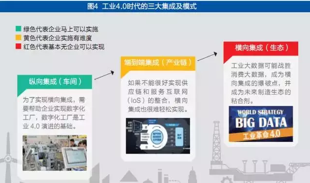 胡权:还是从三大集成来看,目前企业界主要的工业4.0实践集中在纵向集成阶段,这是企业边界内的事情,做起来比较容易,诸如三一重工、华为、中车等;另外有一部分企业做的事情是从产业链的集成做,也就是所谓端到端集成,通过打通供应链,并且往客户端提供电子商务,要做这样的集成,前提就是企业需要在产业链上拥有控制力,是主导的利益相关者,例如,海尔现在做的就是端到端集成。