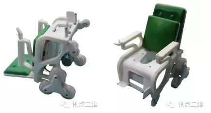 中国残疾人联合会主席张海迪等在现场观看了相关产品:3D打印假肢、3D打印康复器具、3D打印可爬楼梯轮椅。
