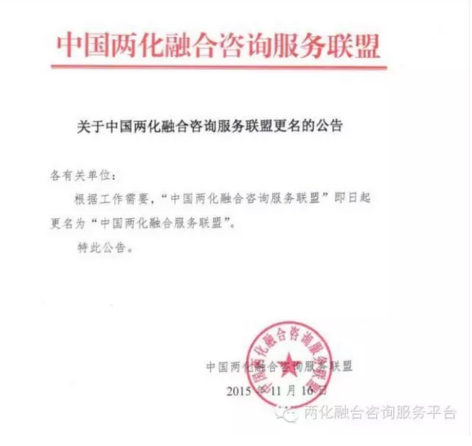 关于中国两化融合咨询服务联盟更名的公告