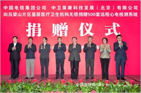 捐赠仪式上,中国电信集团公司董事长王晓初代表捐赠方发表讲话指出,近年来,为贯彻国家新医改方针,落实大力加强社区卫生技术水平和服务能力的提高要求,加大扶贫攻坚力度,卫生部出台了一系列重要举措。此次国电信与中卫莱康合作推出“健康心翼”基层医疗应用项目,就是在卫生部的领导下,开展帮助贫困地区提高远程心电诊疗水平的一次重要行动。“健康心翼”基层医疗应用是专为村卫生室,社区基层医疗卫生机构提供的远程心电诊疗信息化解决方案。中国电信和中卫莱康将联合向卫生部帮扶的吕梁集中连片特困地区的20个县捐赠相关的产品和服务,帮助基层医疗机构提高心血管疾病的筛查防治水平,使基层得到高水平的医疗资源支持,以保障人的生命安全。这是一项民心工程,具有重要的意义。