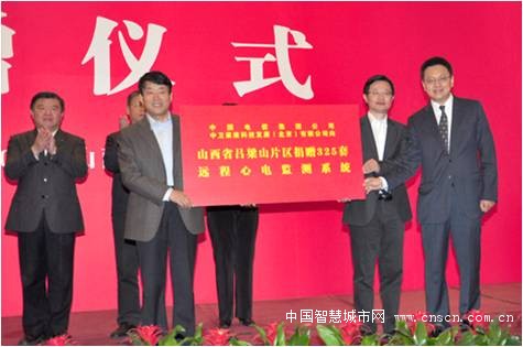图3:中国电信政企事业部总经理韩臻聪代表中国电信集团公司向山西省卫生厅捐赠325台“健康心翼”远程心电监测系统