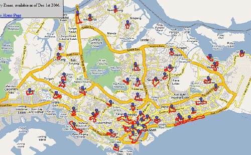 新加坡全境的无线热点分布图