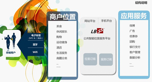 所谓LBSS,意指Smart LBS。即,基于位置的智慧服务。据悉,该平台整合了包括蓝牙无线技术、Wifi感应技术,NFC智能芯片技术以及二维码技术等一系列智能定位技术,定位精度高达1米;基于云端强大的分析处理能力,该平台将完成用户身份识别与消费者行为分析与预测工作;另外,它还整合了包括丁丁优惠、新浪网等各大应用服务商资源——从而为商家提供更具服务品质的商业服务指引,为消费者提供更丰富、更高品质的商业应用服务选择,最终全面提升商户和消费者的服务关系和服务水平。