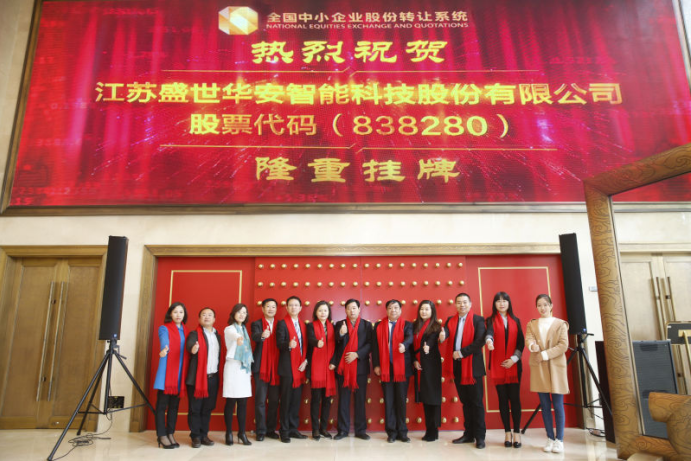 2016年11月1日,中国通信工业协会物联网应用分会理事单位江苏盛世华安智能科技股份有限公司(证券简称:盛世华安,证券代码:838280)新三板挂牌敲钟仪式在全国中小企业股份转让系统中心隆重举行。公司董事长孙浩元,市委常委、党工委副书记黄雪元,苏州市发改委处长吴日新,上市金融办主任李秋菊等市政府领导以及国金证券张超营等出席挂牌仪式。共同见证盛世华安这一里程碑的重要时刻。8月5日,盛世华安在新三板正式挂牌,成为张家港市今年登录新三板的第六家企业。