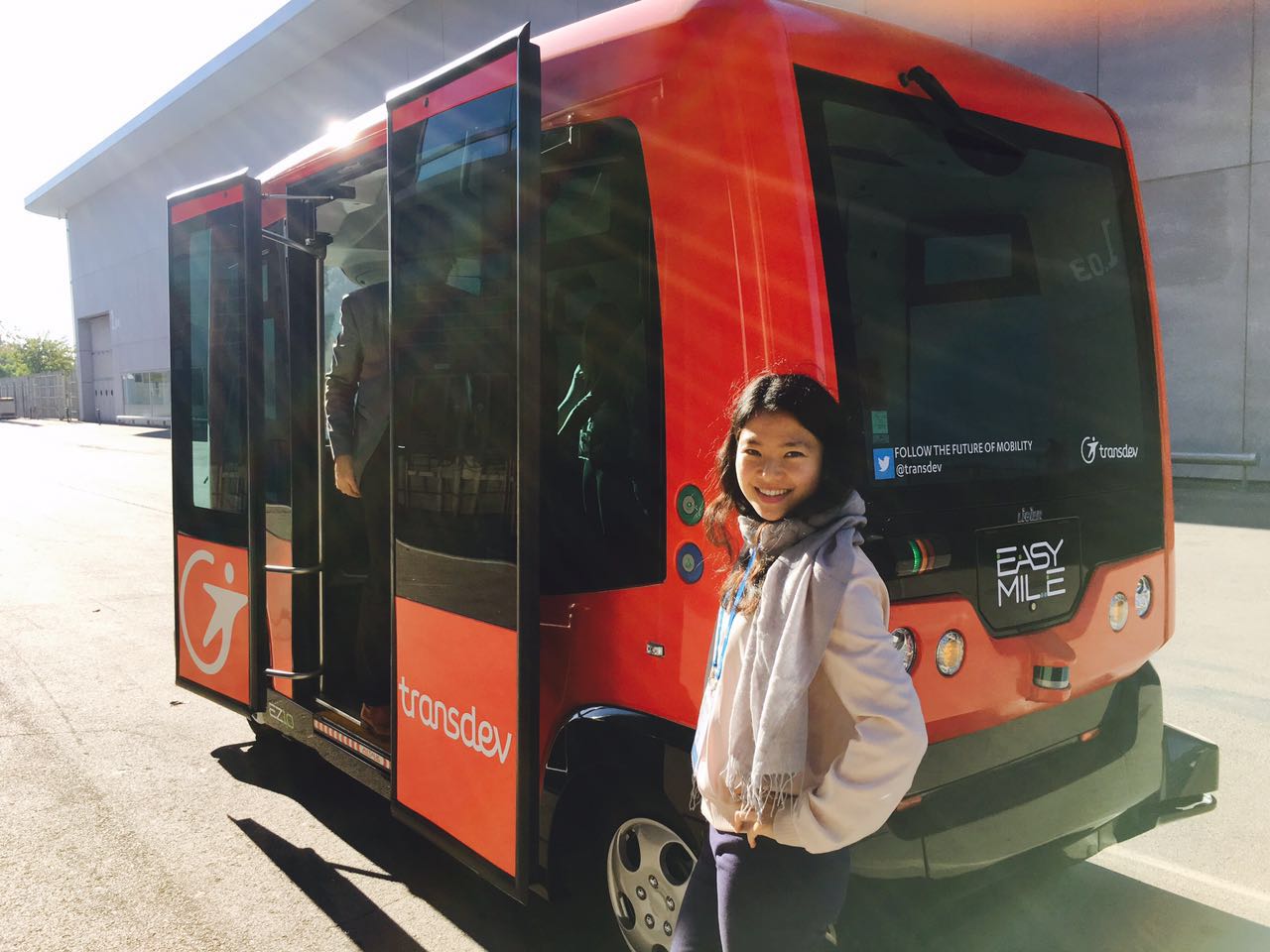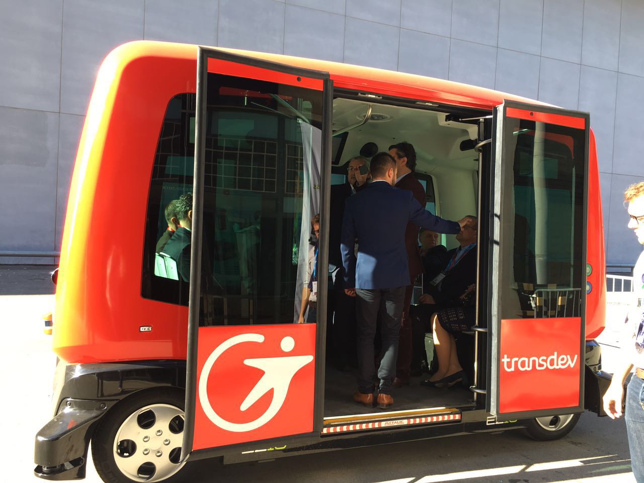 车辆目前的时速在10公里至20公里之间,理论上能到40公里。主要的运行场景是在3公里、5公里和7公里的目的地明确的短途行驶,可以容纳10-12名成人。目前售价为10万欧元。