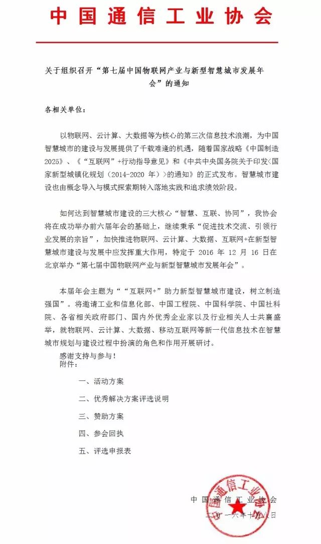 第七届中国物联网产业与新型智慧城市发展年会 将于2016年12月16日在北京万寿宾馆举办。