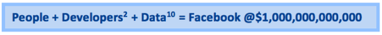 要想把物联网以及更多用户引入Facebook,关键在于说服更多的开发者积极利用Facebook平台。该公司表示,目前iOS和Android应用前400强中有40%都整合了Facebook。下面这个方程式,体现了Facebook吸引更多开发者,获取更多数据,以便给它的DNA(也就是人)提供更精确、更具盈利性的信息,从而实现其使命的构想: