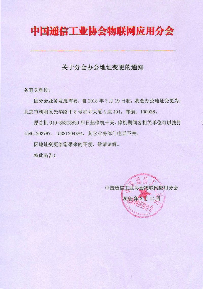 关于分会办公地址变更的通知