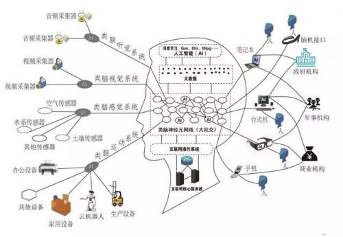 从1969年互联网诞生以来,人类从不同的方向在互联网领域进行创新,并没有统一的规划将互联网建造成什么结构,当时间的车轮到达2017年,随着人工智能,物联网,大数据,云计算,机器人,虚拟现实,工业互联网等科学技术的蓬勃发展,当人类抬起头来观看自己的创造的巨系统,互联网大脑的模型和架构已经越来越清晰。