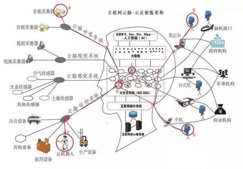 互联网的类脑神经元网络是由社交网络发育而成,无论是世界范围的个人用户、企业、政府机构、路灯、车辆、工场,各种智能设备,智能程序都要以神经元的方式加入到智慧社会的神经元网络中,这些类脑神经元的互动,聚合,链接将使智慧社会真正变得更为智慧。它也是后续探讨的云反射弧能够正常运转的基础。