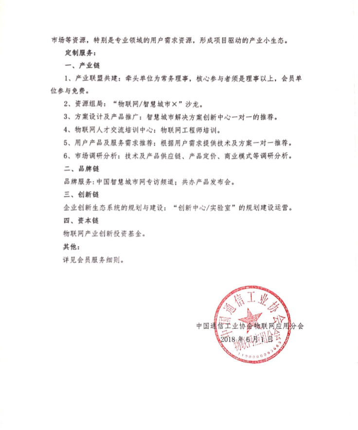 为切实做好会员服务工作,加强各会员之间的联系,深入研究和交流物联网领域的工作,中国通信工业协会物联网应用分会围绕“产业+创新+品牌+资本”等四链,构建了“资源组合+产业研究+品牌影响力传播+行业应用”等四大服务平台。从行业平台、产业资源以及特色咨询三个层级给会员企业提供涵盖战略、技术、市场、品牌、资金等多维度服务。