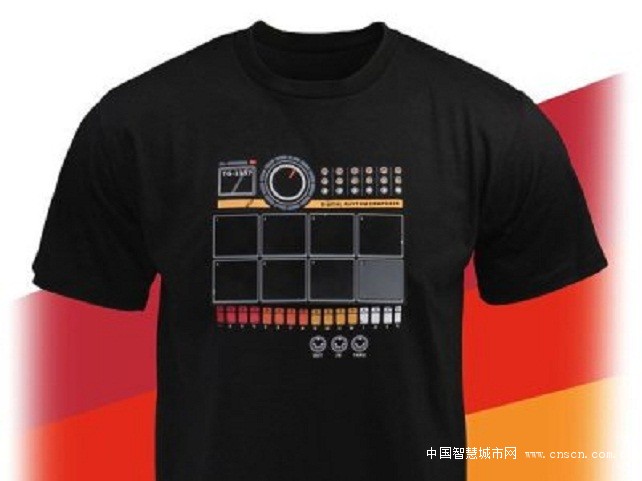 Drum Machine T恤图案上的鼓点可以通过鼓点进行控制,另外,消费者还可以搭配一条可以配置迷你扩音器的裤子。