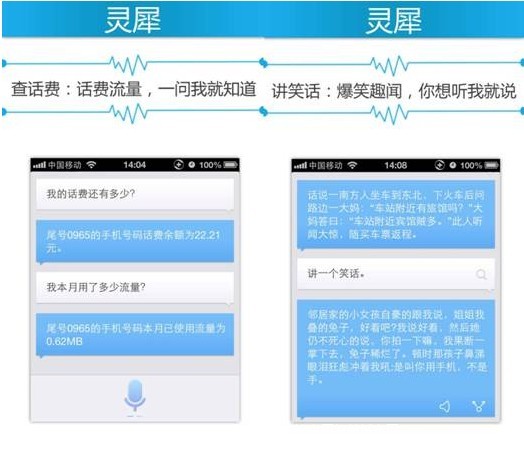“我们能享受到安卓用户们一样的功能体验吗?“对于上线后的灵犀iPhone版,一部分果粉们提出了这样的疑问。据灵犀官方消息透露,此次推出的是灵犀iPhone的全功能版,果粉们可以同等享受到安卓用户一样智能语音交互体验。让我们一起简单的看一下:首先,在手机语音操控方面,支持语音打电话、发短信,设提醒,同时还可以离线打电话、发短信等;其次,对接移动优势业务,在灵犀iPhone版中,保留了查话费、查流量、定制彩铃等特色功能;第三,跑不掉的“娱乐”功能,听音乐、听新闻,说笑话、幽默闲聊,让你娱乐到底;第四,不可或缺的“最生活”功能,查天气、查路线、查美食,生活中的查询问题,想问什么,都能查到。