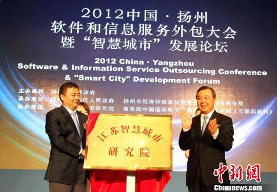 当日,扬州市委书记谢正义、代市长朱民阳、国家工业和信息化部信息化推进司司长徐愈等领导和来自国内外软件服务业领域600多名重要客商,各大银行、保险等金融机构,行业组织、中介机构代表出席参加在扬州广陵新城京杭之心举行的2012中国·扬州软件和信息服务外包大会暨“智慧城市”发展论坛。