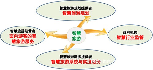 智慧旅游的服务提供者:主要是指智慧旅游软件及硬件服务提供者、运营商以及负责技术支撑层面的云计算基础设施服务提供者和云计算应用服务提供者等。