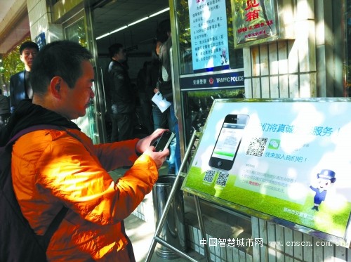 采访中记者发现,当天上午到二大队办事大厅办理业务的人很多,大家听说该队开通了微信服务平台,争相进行“关注”。