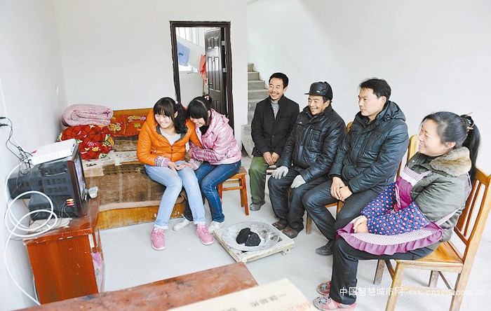 农村特困户没有能力建设新居怎么办?巴中市探索出“农村廉租房”模式,对廉租房实行村社统一管理,产权归集体,与居住户签订租房合同,每年缴纳100元至200元不等的租金。入住对象按“召开村民代表大会、群众推选、大会评比、张榜公示”的方式确定,并按人口多少来确定居住面积。图为南江县南鹰村蒲家坪聚居点的特困户谭元德一家和邻居在家观看电视节目。